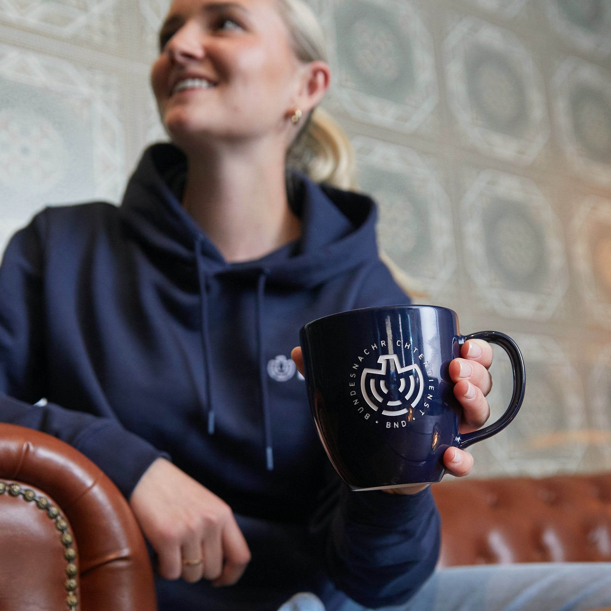 Premium large mug by Mahlwerck, laser-engraved with the official BND logo.