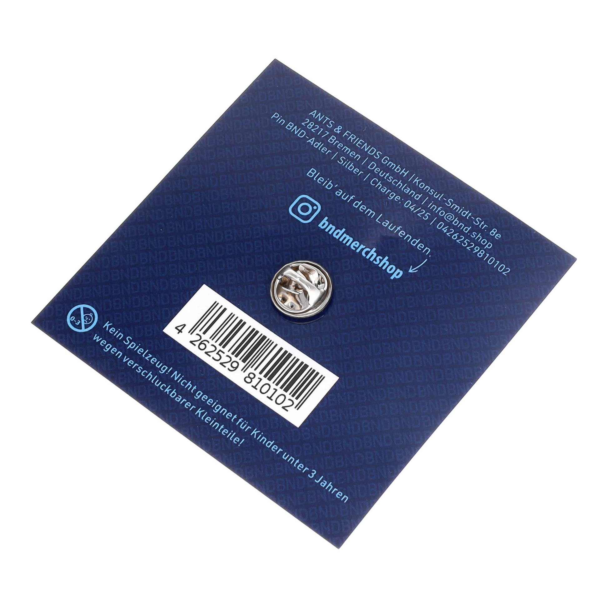 This elegant BND eagle pin impresses with its sandblasted finish and precise workmanship.