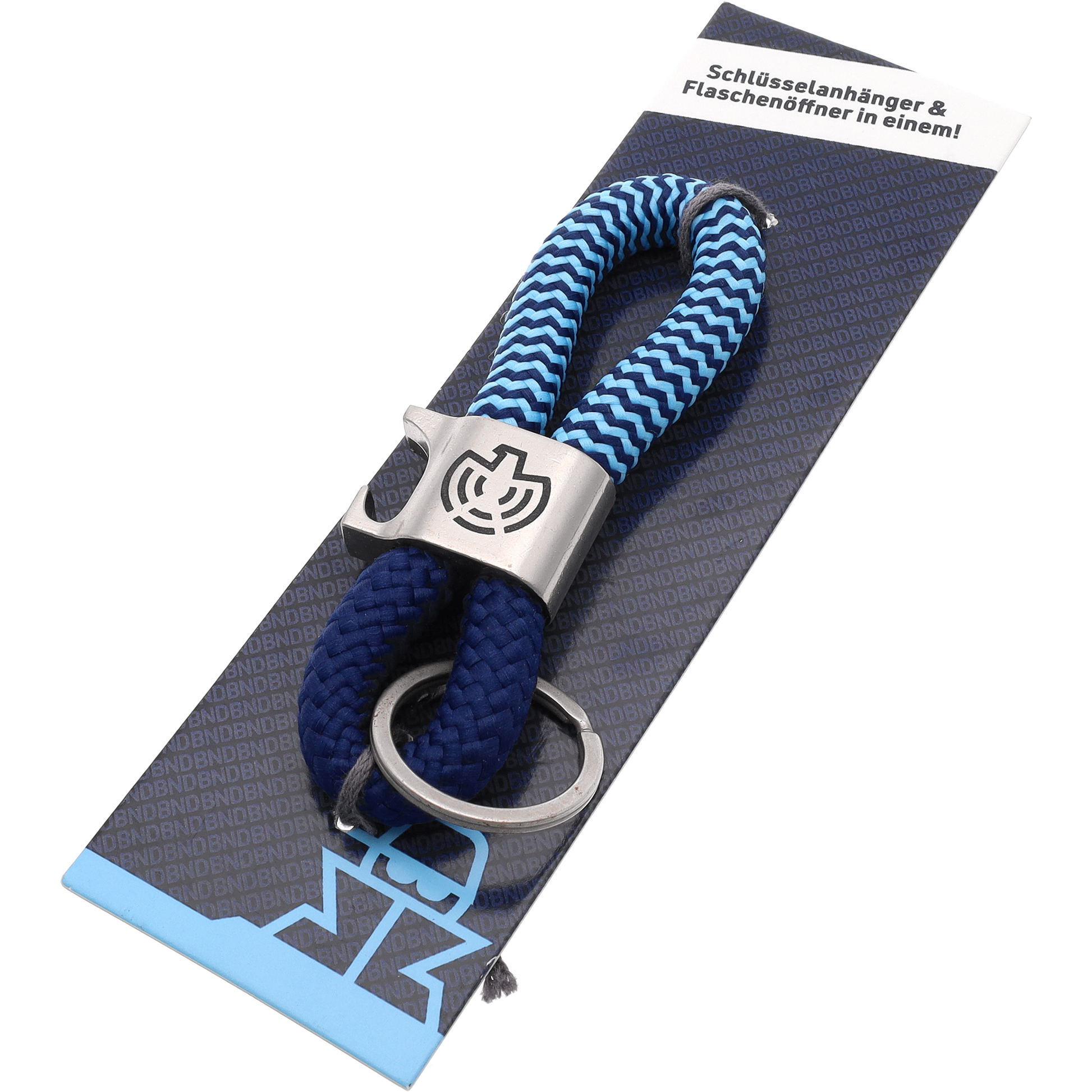 Robust, leicht, langlebig: der Tau-Schlüsselanhänger aus recyceltem PET-Material ist nicht nur nachhaltig, sondern auch mit dem integrierten Flaschenöffner äußerst praktisch.